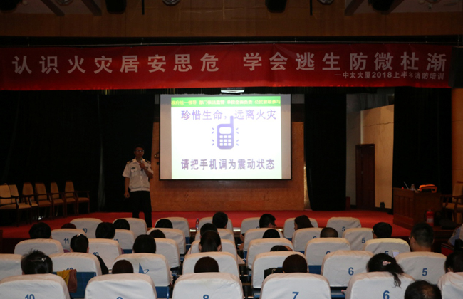5月25日上午,中太大廈2018年度上半年消防培訓(xùn)在二樓報(bào)告廳舉行,邀請(qǐng)中國安全健康教育網(wǎng)河北站高級(jí)宣教員程軍老師,為大家?guī)硪粓鼍实南乐R(shí)講座。