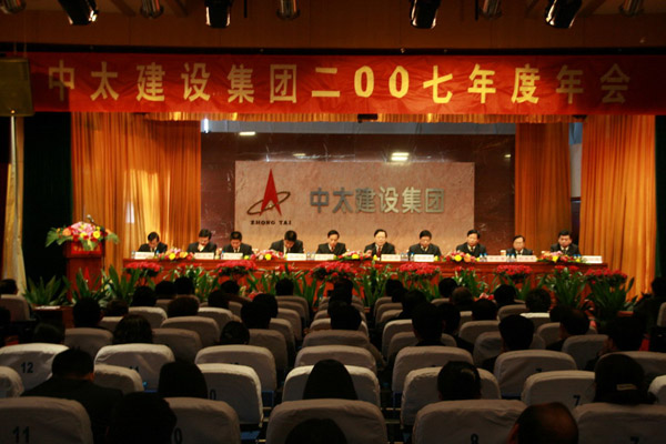 2008年元月16日,中太建設(shè)集團(tuán)隆重召開了2007年度工作總結(jié)、表彰大會。公司下屬各單位行政一把手、支部書記,總部及各事業(yè)部機(jī)關(guān)全體人員,先進(jìn)單位代表、先進(jìn)生產(chǎn)(工作)者及部分記功代表共240余人參加了大會。